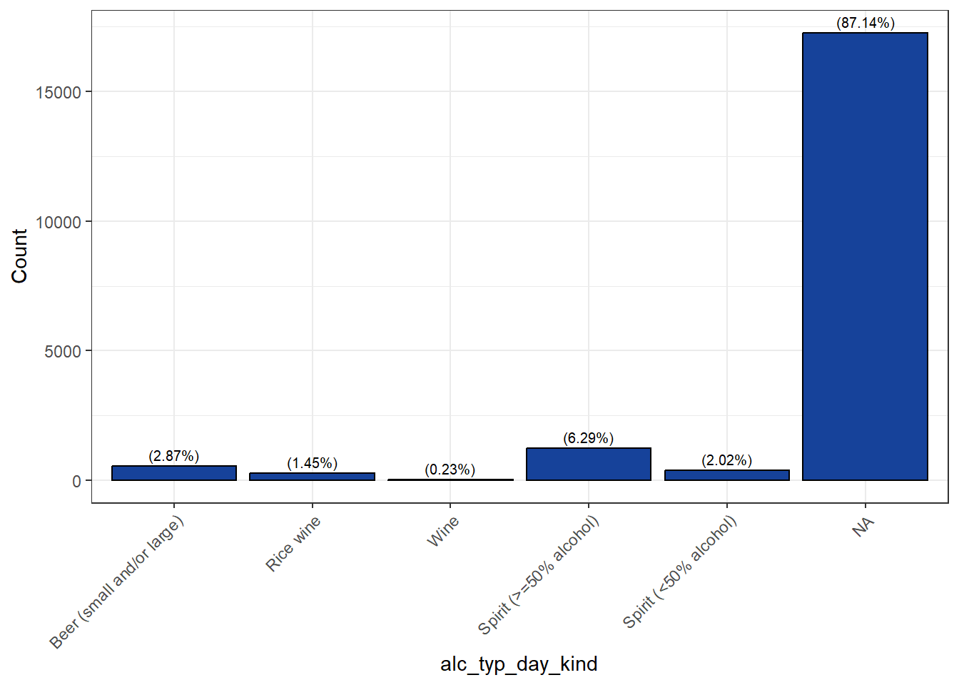 | Spirit (>=50% alcohol) | 35897 | 46.97 | 6.96 |