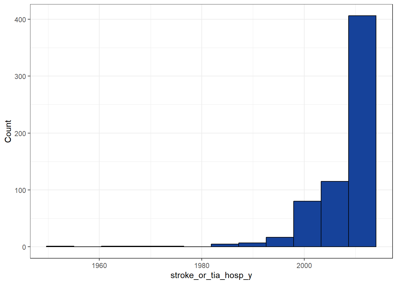 “Year of last hospitalisation for a stroke or TIA”