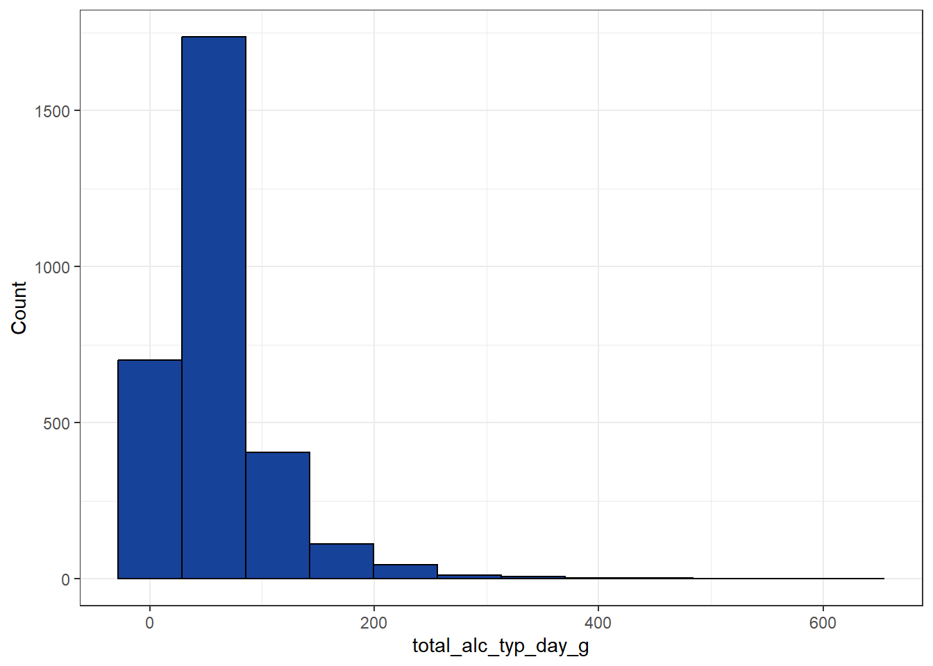 “Total grams of alcohol consumed on a typical day”